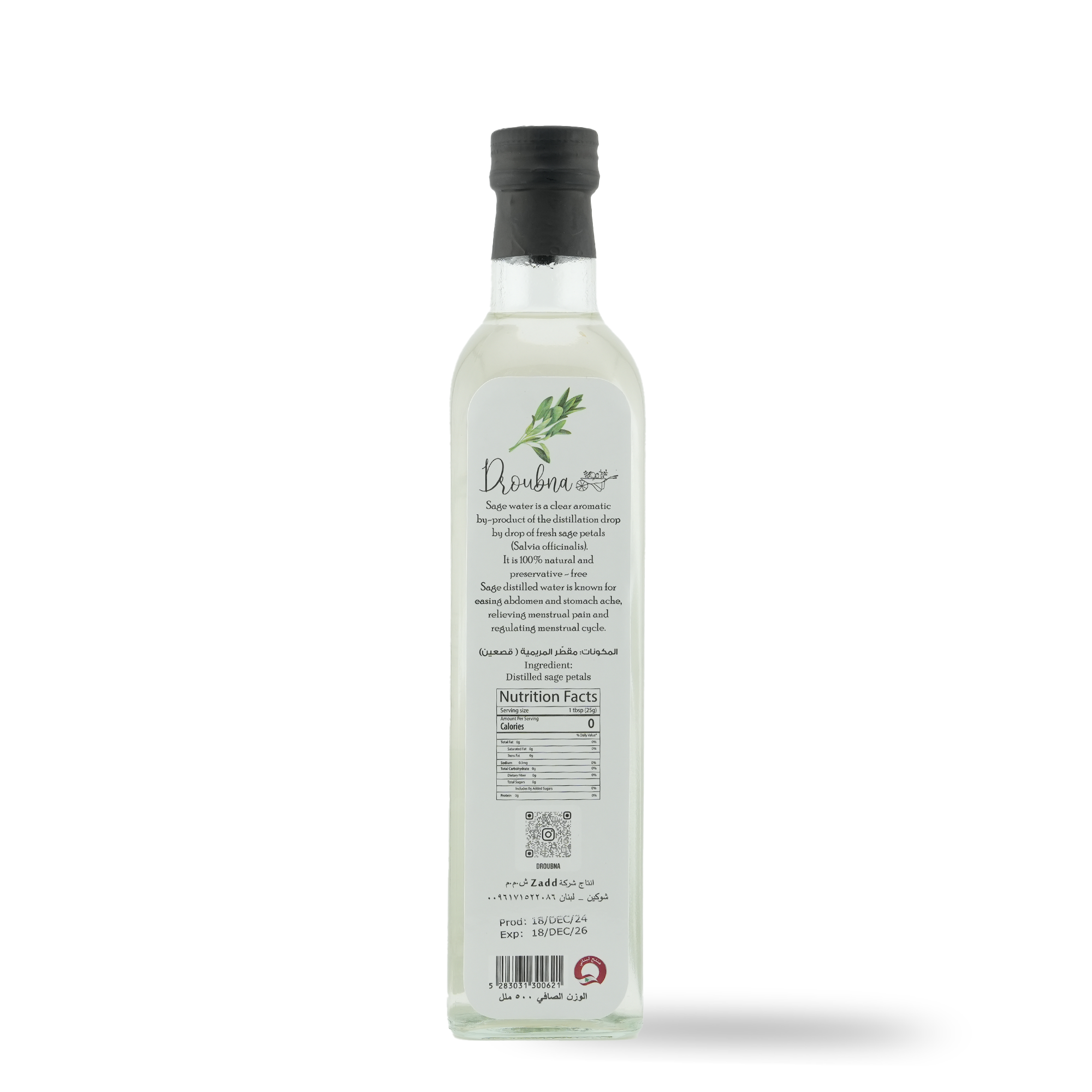 - Herbal water obtained through steam distillation of fresh sage leaves and stems