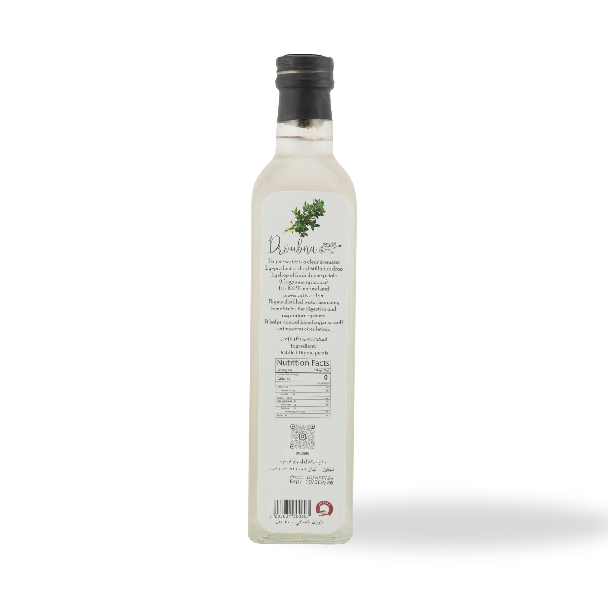 - Herbal water obtained through steam distillation of fresh thyme leaves and stems